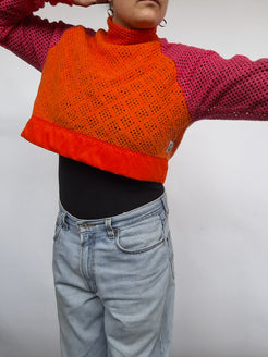 Made from upcycled vintage blankets with the existing satin hem. Sleeves are designed long to be turned up the desired length.