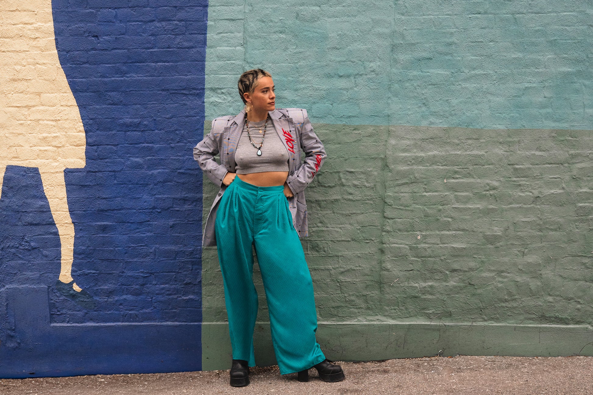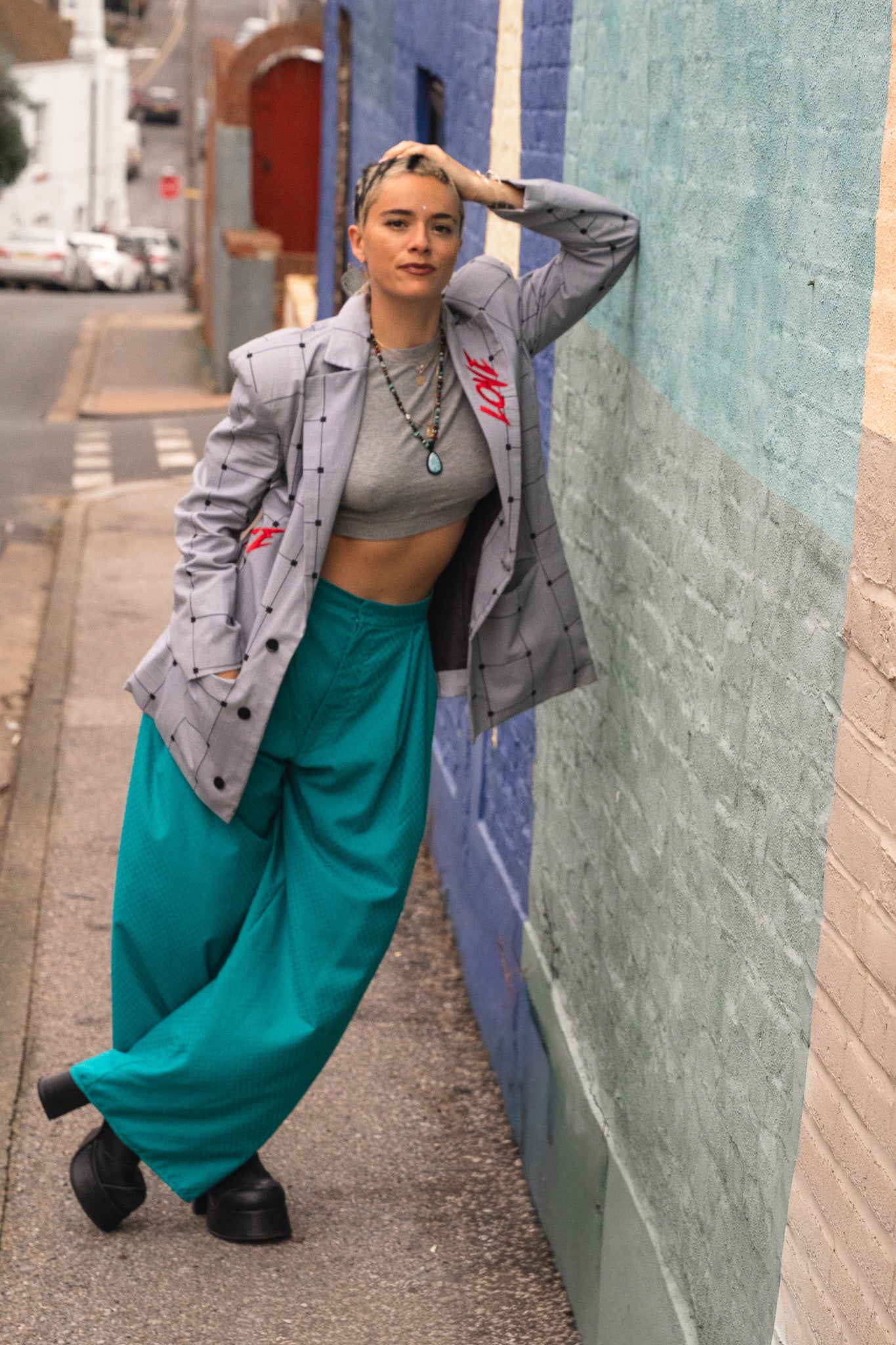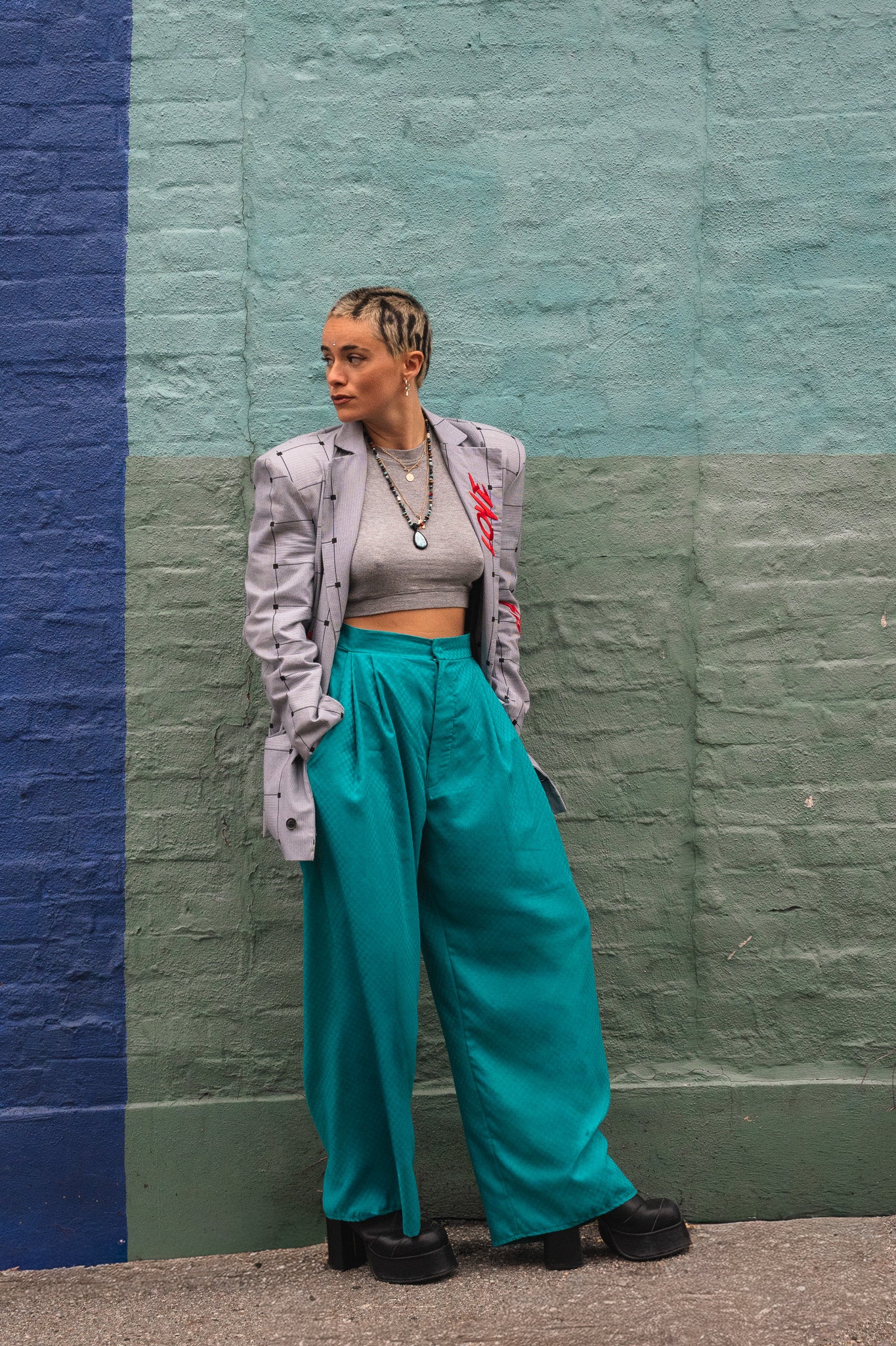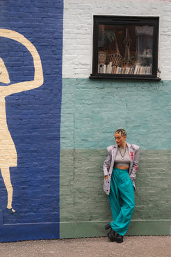 Statement print trousers handmade from upcycled 80’s deadstock fabrics.