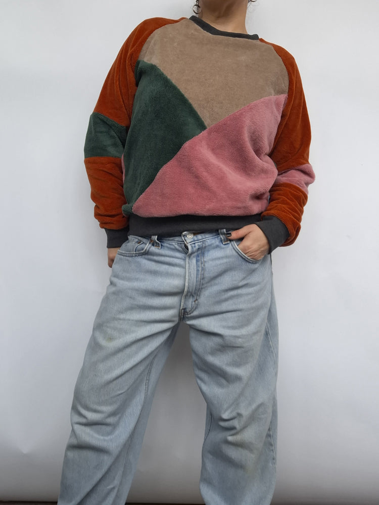 Our tradmark Cross Panel sweatshirt in super soft towelling remnants,
